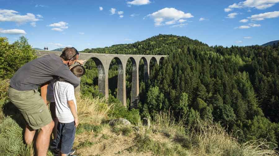 Vous aurez la chance de traverser un ouvrage d’art vertigineux à l’étrange histoire. Le viaduc de la Recoumène, construit pour que la ligne